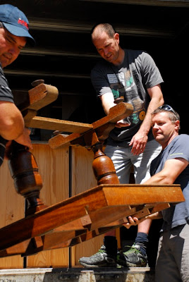 Andreas and Danielle and Betta had already been hard at work during the week, getting things ready for their move. We called in at the new house on Kitchener Square last night after leaving the Gregorys and it was clear to see that a lot had been accomplished already. We had a guided tour through the expansive two-storey villa; this morning we were ready and eager to launch straight into the packing, moving and unloading of furniture and boxes. Aaron put himself out of action pretty soon by dropping a chair on his foot and doing some damage to his toenail; Danielle took charge and nursed him magnificently while all I could manage was to set next to him in the bathroom offering sympathies from a distance. Thank goodness I didn't have to examine it or look at the blood! His agonized wailing drew quite a crowd.