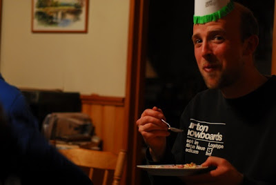 Saturday afternoon had *that* feeling in the air...you know, the feeling of summertime, where you want to invite some buddies over for a BBQ, pull out a guitar, and sit outside and chill. Quick, we thought, let's plan a plan and make it happen. We got hold of Liz and Graham who also had Sascha with them, who is interning with Graham and staying with the Gregories for a few days. Alas though, by the time it was BBQ time, not only was it nearly dark, but also cold and drizzling. Ah well...summer's a'coming, for sure. After tea Liz and I needed to pop out for a few bits and pieces for a forthcoming event, and by the time we returned Nick, Graham, Sascha, Caleb and Aaron were prancing around the kitchen, giggling like schoolgirls, trying to throw paper darts (planes) into the open potbelly fire. It was a sight to behold!