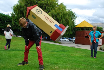 Dad, Mom, the boys and I left Nick at home for the weekend, heading off on a short getaway to see some sights. Our first stop was around lunch-time in Wanaka, where we spend the afternoon at Puzzling World. I've been wanting to see this place for a few years now, even since before we came to NZ - fancy it having taken us so long to achieve! It was money well spent and a great afternoon...even lunch was part of the fun as we arranged tangrams and other wooden puzzles which are left scattered about for patrons to enjoy.